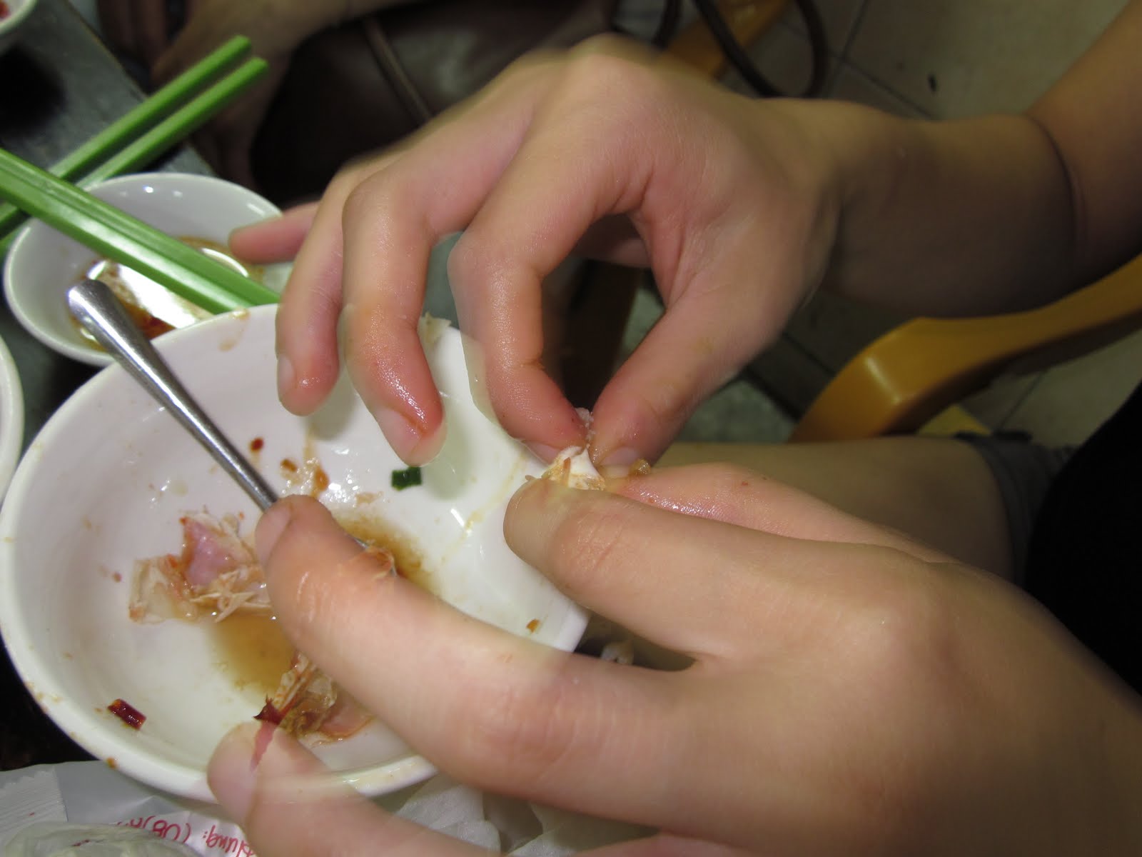 I asked my family of such a street and they immediately knew what I talking about, but they were more surprised that I would actually want to eat there. "Aren't you scared?", they asked me. Scared? Why would I be scared? Should I be scared? Apparently, these places aren't known to be the cleanest and with my foreigner stomach, the risk of getting a stomach ache or even worse, food poisoning is high. Pssh...screw that. I wasn't going to pass up the chance to eat seafood for a third of the price it would cost in the States and seeing that my stomach has been surprisingly healthy so far, I was game.